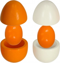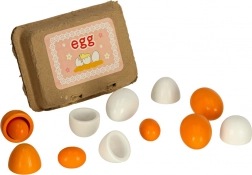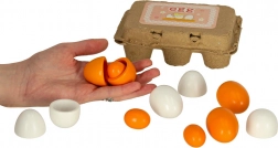 Ovaj drveni set jaja u kompaktnoj kartonskoj kutiji izgleda gotovo kao pravi. Djeca mogu oponašati odrasle, pripremati „jela” i pritom vježbati koordinaciju oko–ruka i maštu. Izdržljiva drvena izrada osigurava dug vijek trajanja i sigurnu igru.