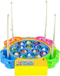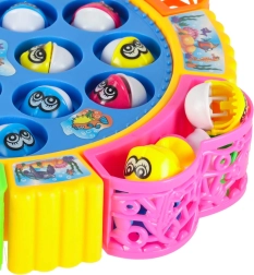 Uključite rotirajuće jezerce, pripremite štapove i krenite pecati! Ribice se pri okretanju naizmjenično otvaraju i zatvaraju, pa su potrebni precizno tempiranje i spretnost. Igra je idealna za 1–4 igrača, a zahvaljujući veseloj glazbi i izraženim bojama djeca će je odmah zavoljeti.