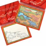 Bilježnica sadrži 4 višekratno upotrebljive stranice u spiralnom uvezu. Nakon sušenja crtež izblijedi i dijete može crtati iznova i iznova. Kompaktne dimenzije idealne su za ruksak na putu.