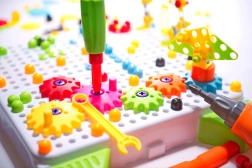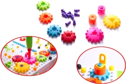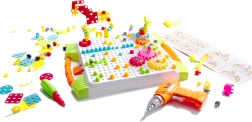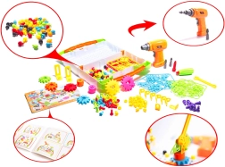 Ova pametna slagalica spaja zabavu s učenjem. Uz pomoć dječje bušilice na baterije ili odvijača, djeca lako uvrću šarene vijke u perforiranu ploču i slažu razne uzorke, životinje ili vozila. Jarke boje potiču učenje boja i oblika, dok samo uvrtanje jača spretnost prstiju i koordinaciju oko–ruka.