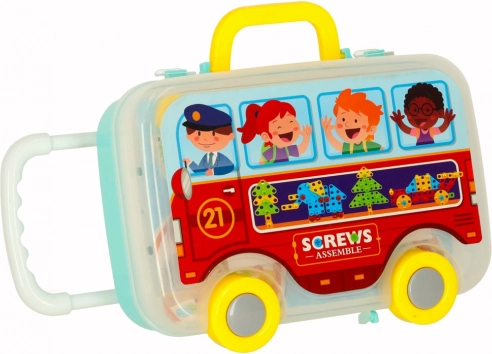 Probudi kreativnost kod djece uz ovu šaroliku konstrukcijsku set u praktičnom koferu. Djeca pomoću baterijske bušilice ili odvijača zavijaju obojene vijčiće u perforiranu ploču i stvaraju slike i 3D modele. Igra potiče finu motoriku, logiku i maštu, a zahvaljujući 258 dijelova nudi sate zabave kod kuće i na putu.