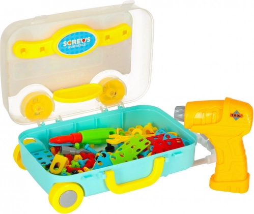 - kofer, perforirana ploča, obojeni vijci i oblici, bušilica, odvijač, knjižica s predlošcima