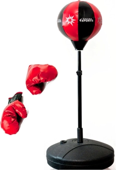 Bokserska kruška za djecu učvršćena je na teleskopskoj metalnoj šipci i preko opruge spojena sa stabilnom bazom. Zahvaljujući tome nakon udarca se glatko vraća, te je trening siguran i zabavan. Kruška je na napuhavanje, ukupna maksimalna visina kompleta je 124 cm, a podešavanje visine odvija se u rasponu 90–124 cm.