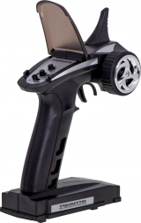 Pistoljski upravljač na frekvenciji 2,4 GHz nudi stabilan signal i domet do oko 150 m. Uživajte u glatkom dodavanju gasa, reverzu i osjetljivom upravljanju bez smetnji.