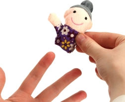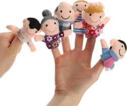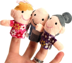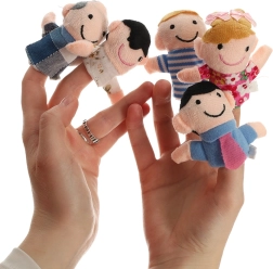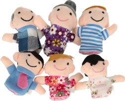 Set lutkica za prste sadrži šest raznobojnih likova koji predstavljaju članove obitelji: oca, majku, djeda, baku, kćer i sina. Lutkice se lako stavljaju na prste i osmišljene su tako da budu zabavne i jednostavne za upotrebu i najmlađima.