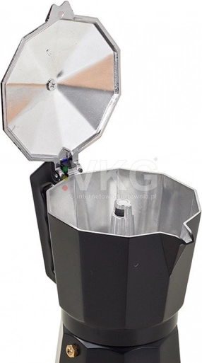 Sigurnosni ventil u donjoj posudi pridonosi sigurnom radu, dok ergonomska, toplinski otporna drška olakšava rukovanje i štiti od opeklina. Kafetijera se sastoji od tri dijela: donje posude za vodu, metalnog sita za mljevenu kavu i gornje posude za gotov napitak.