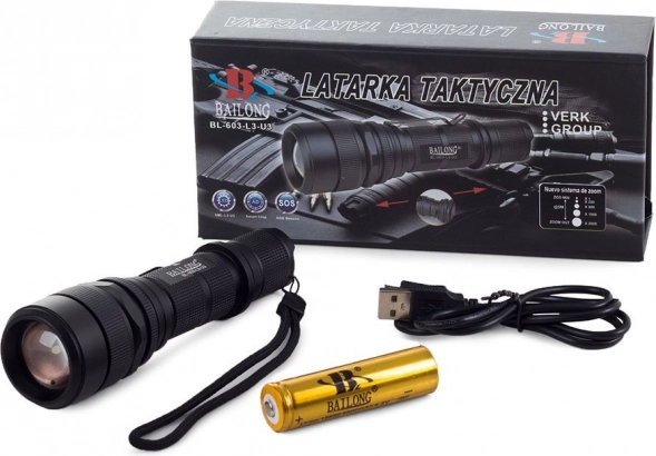 Vojna svjetiljka marke Bailong pažljivo je konstruirana za taktičku uporabu, pogodna za uniformirane službe, vojsku, lovce i za kućnu uporabu. Zahvaljujući tijelu od zrakoplovnog aluminija lagana je, a istovremeno vrlo otporna na oštećenja.