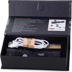 Za svjetlosni učinak brine se dioda CREE XM‑L T6 s vijekom trajanja do 100 000 sati. Glatki zum s lećom omogućuje prelazak s uskog, dalekog snopa s dometom do 400 m na široko osvjetljenje okoline. Dostupna su tri načina rada (100 %, 50 %, stroboskop), a iste načine nudi i praktično bočno svjetlo. Napajanje iz članka 18650 s punjenjem putem USB-a olakšava upotrebu kod kuće i na terenu; tu je i kopča za pričvršćivanje te elegantno poklon-pakiranje.