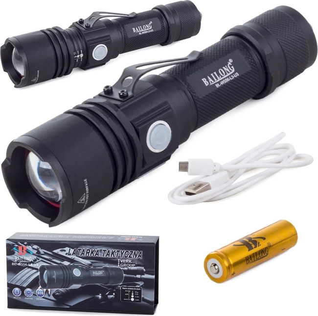 Izdržljiva taktička svjetiljka BAILONG izrađena je od zrakoplovnog aluminija s tvrdo eloksiranom površinom. Pažljivo brtvljenje s O‑prstenovima štiti mehanizam od kiše, vlage i blata, a protuklizna površina i ergonomična drška osiguravaju siguran hvat u svakoj situaciji.