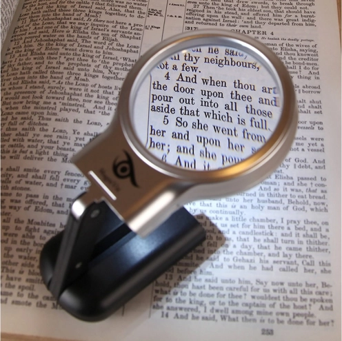 Ova univerzalna ručna lupa izvrsno je pomagalo za svakodnevno čitanje, šivanje i preciznu kontrolu detalja na markama i kovanicama. 3× povećanje u kombinaciji s lećom od 60 mm osigurava oštru i preglednu sliku bez naprezanja očiju. Dvije LED diode učinkovito osvjetljavaju promatranu površinu, pa odlično služi i u lošijim svjetlosnim uvjetima.