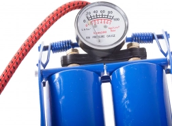 Univerzalna nožna pumpa s dvostrukim cilindrom osigurava i do dvostruko brže pumpanje u odnosu na uobičajene jednodijelne modele. Zahvaljujući robusnoj konstrukciji, preglednom manometru i gumiranoj, oblikovanoj pedali, rad je udoban, stabilan i siguran. Maksimalni tlak 100 PSI / 7 bara pokriva potrebe većine guma i sportskih dodataka.
