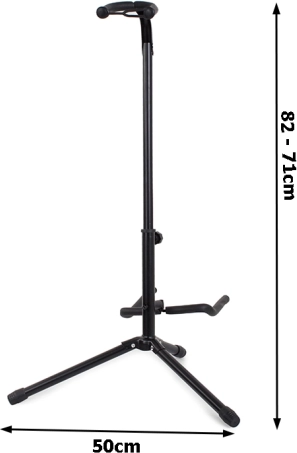 Univerzalan gitarski stalak za klasičnu, akustičnu, električnu i bas gitaru. Lagani je, stabilan i ima sigurnosnu kopču za vrat, gumirane oslonce i protuklizne nožice. Podesiva visina i izdržljiva aluminijska konstrukcija osiguravaju pouzdano odlaganje instrumenta kod kuće i na pozornici.