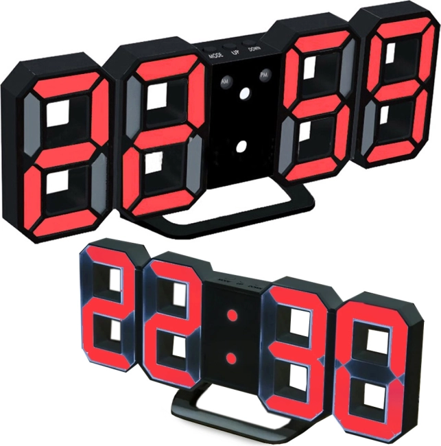 Moderne digitalne zidne/stojeće satne s velikim LED zaslonom za jasno očitanje vremena. Nude 3 razine svjetline, termometar, kalendar, alarm sa snooze funkcijom i mogućnost vješanja na zid ili postavljanja na stol. Napajanje putem USB-a, pregledan zaslon vidljiv i s veće udaljenosti.