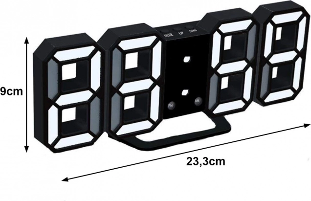 Alarm sa Snooze funkcijom budi vas pouzdano, dok velik LED zaslon ostaje odlično čitljiv i s veće udaljenosti. Konstrukcija omogućuje montažu na zid ili postavljanje na namještaj pomoću stalka. Napajanje osigurava USB kabel, a postavke se čuvaju preko gumb-baterije.
