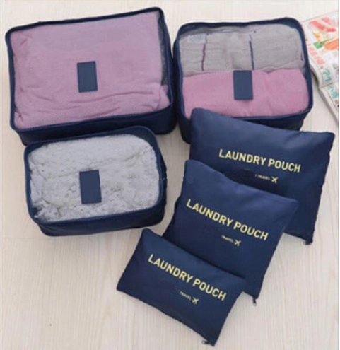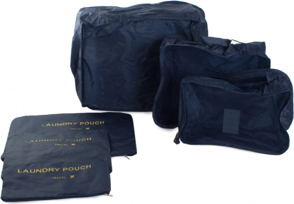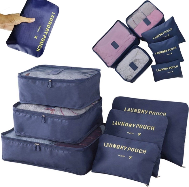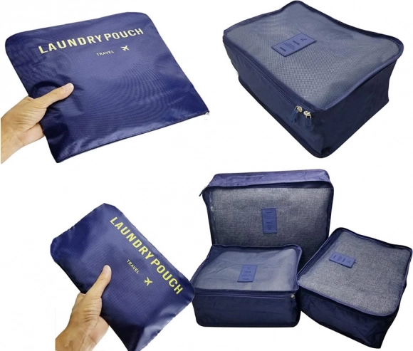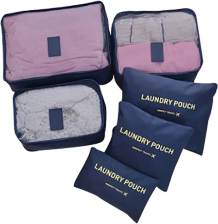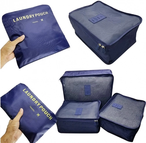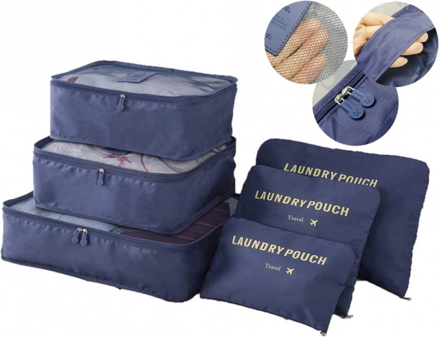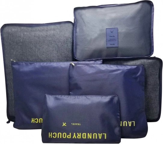 Održavajte red u koferu i ruksaku uz set od šest organizatora u tamno plavoj boji. Tri prozirna kubusa s mrežicom omogućuju brzi pregled sadržaja i bolju ventilaciju, dok su tri neprozirne vrećice idealne za prljavo rublje i sitnice. Sve se zatvara glatkim, obostranim patentnim zatvaračima.