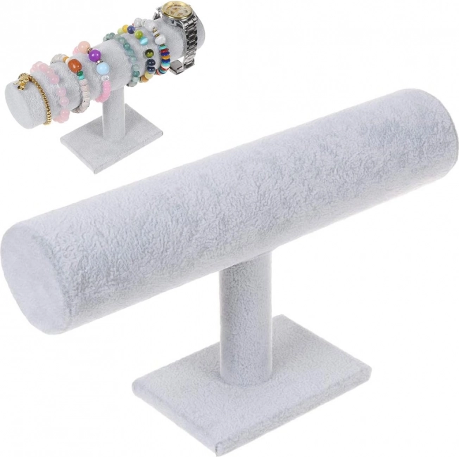 Elegantni stalak za nakit s mekom baršunastom površinom pregledno će držati vaše satove, narukvice i druge dodatke na jednom mjestu. Zahvaljujući širokom valjku prima više komada, ima stabilnu konstrukciju, lagan je, lako se čisti i odlično pristaje u spavaću sobu, na toaletni stolić, u izlog ili za prezentacije.