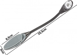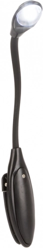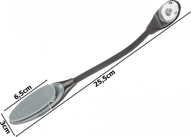 Savitljiv vrat omogućuje precizno podešavanje kuta i visine osvjetljenja. Izdržljiva kopča pouzdanim stiskom pričvršćuje lampicu na knjigu, policu, radnu plohu ili okvir kreveta. Zahvaljujući napajanju 2× CR1220 lampica je potpuno mobilna i spremna za putovanja.