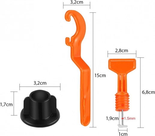 Nivelacijski sustav za pločice pomaže postići savršeno ravan površinski sloj bez stepenica. Zahvaljujući čvrstim kopčama i jednostavnom zatezanju maticom, precizno poravnanje obavit ćete brže i s manje napora. Komponente su izdržljive i višekratno upotrebljive, što smanjuje troškove kod više projekata.