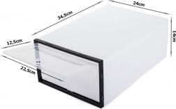 Svestrana kutija za cipele idealna je za svakodnevnu upotrebu i dugotrajno skladištenje. Zahvaljujući prozirnom poklopcu sadržaj vam je uvijek na očima, a ventilacijski otvori osiguravaju cirkulaciju zraka. Kada je ne koristite, jednostavno je sklopite na ravno.