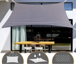 Uživajte u ugodnoj sjeni i suhom sjedenju i tijekom pljuskova. Pravokutna sjenilna cerada 3 × 2 m u elegantnoj sivoj boji kombinira izdržljiv poliester 180 g s ojačanim rubovima i kutovima za dug vijek trajanja. Vodoodbojna obrada i UV zaštita osiguravaju pouzdane performanse u promjenjivom vremenu, a cerada se brzo suši.
