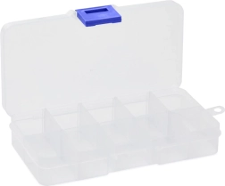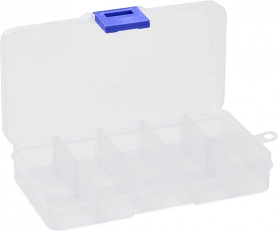 Modularno rješenje omogućuje postaviti minimalno 4 i maksimalno 10 pretinaca – jednostavnim vađenjem ili umetanje pojedinih pregrada. Prozirna izvedba osigurava brz pregled sadržaja, dok tijesno prianjajuća kopča pouzdano drži poklopac tijekom prijevoza.