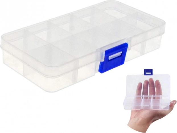 Praktičan organizator s mogućnošću proširenja do 10 pretinaca održava red u vijcima, lijekovima, nakitu ili perlicama. Zahvaljujući prozornom poklopcu sadržaj je uvijek pod kontrolom, a čvrsta kopča sprječava slučajno otvaranje tijekom prenošenja.