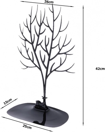 Elegantni stalak za nakit u obliku stabla drži vaše dodatke pregledno na jednom mjestu. Zahvaljujući brojnim grančicama lako ćete objesiti ogrlice, narukvice i naušnice, dok široka baza služi za prstenje, satove ili sitnu kozmetiku. Lagani i lako čistiv organizator ujedno je stilska dekoracija interijera i praktičan pomagač za dom ili izlog trgovine.