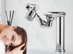 Okretni perlator s kromiranom završnom obradom značajno olakšava svakodnevni rad uz sudoper. Zahvaljujući zglobu s rasponom 1080° vodu lako usmjerite točno tamo gdje je trebate – prema gore, dolje i u stranu. Prebacivanje između kontinuiranog mlaza i nježnog tuširanja osigurava udobno ispiranje i uštedu vode.
