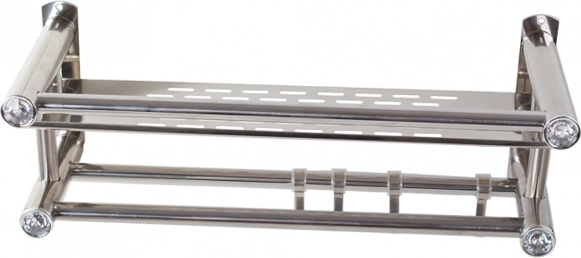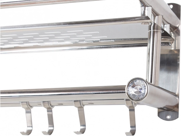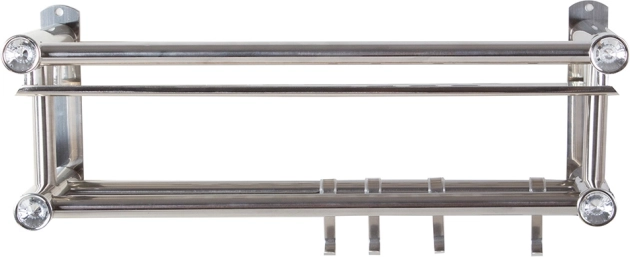 Laki aluminij osigurava otpornost na vlagu i jednostavno održavanje. Ugradnja je jednostavna i stabilna, a potrebno montažno pribor uključen je u pakiranje. Dekorativni završeci s kristalnim elementima daju polici suptilan šarm.