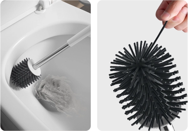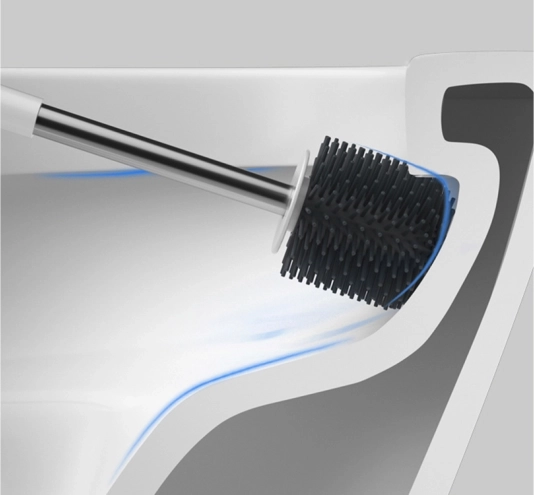 Ova silikonska viseća WC četka je dizajnirana za maksimalnu higijenu i učinkovitost. Silikonske čekinje su fleksibilne i izdržljive, što omogućuje njihovo lako održavanje i savršenstvo čišćenja i najteže dostupnih kutova WC školjke. Četka se može objesiti na zid ili postaviti, štedeći tako prostor na podu.