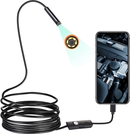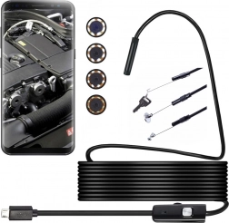 Kompaktna endoskopska kamera za Android (OTG) i Windows omogućuje vam zaviriti u teško dostupna mjesta. Ima fleksibilni kabel od 5 m, glavu kamere promjera 5,5 mm i 6 LED s glatkim podešavanjem svjetline za jasan prikaz i u mraku. Zahvaljujući vodootpornosti IP67 i priboru (kuka, magnet, ogledalo) idealna je za kućanstvo, automobil i radionicu.