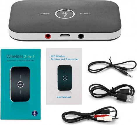 - Bluetooth adapter 2-u-1, AUX kabel, RCA kabel, Micro USB kabel, originalno pakiranje