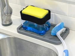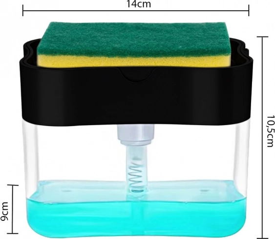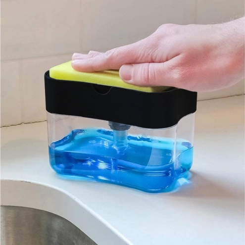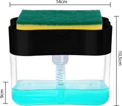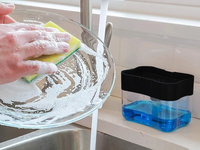 Održavajte kuhinju i kupaonicu bez nereda zahvaljujući pametnom dozatoru koji spaja spremnik za tekući sapun ili deterdžent s praktičnim držačem spužvice. Jednim pritiskom spužvice dobit ćete točno onoliko sredstva koliko vam treba – bez rasipanja i kapljica oko sudopera.