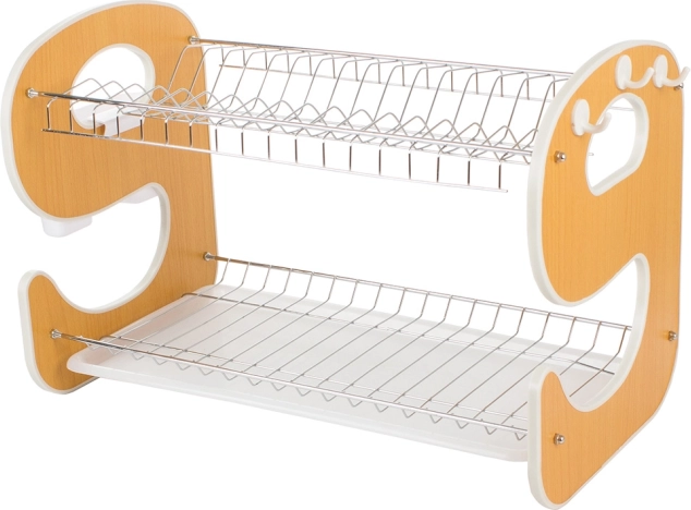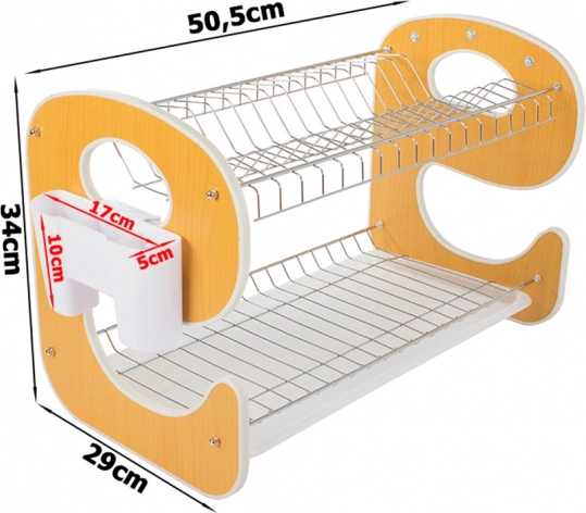 Elegantno i funkcionalno dvoslojno ocjedalo za posuđe s dizajnom u obliku „E” bit će stilski i praktičan pomoćnik u vašoj kuhinji. Ocjedna posuda prikuplja vodu i štiti radnu plohu, dok dvije razine učinkovito suše tanjure, zdjele, čaše i šalice.