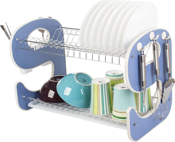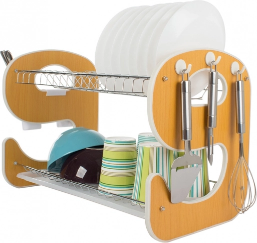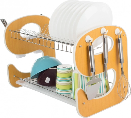 Praktično dvoslojno ocjedalo za posuđe s ocjednom posudom održava vašu kuhinju savršeno urednom. Nudi stabilnu konstrukciju, kapacitet do 14 tanjura, 2 razine sušenja za tanjure, zdjele i šalice te viseći organizator za pribor s kukicama za kuhinjske dodatke. Kombinacija metala i izdržljive plastike osigurava dug vijek trajanja i otpornost na vlagu.