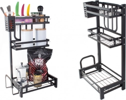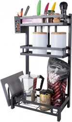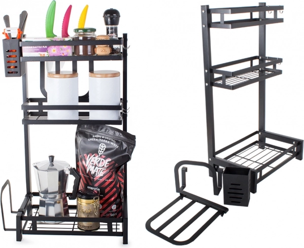 Opremljen je visećim organizatorom za pribor za jelo, posebnim organizatorom za velike kuhinjske noževe te policom za daske za rezanje. Proizvod također nudi 4 kukice za vješanje krpa ili kuhinjskog pribora, što osigurava maksimalnu fleksibilnost i udobnost.