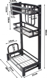 Metalni troslojni kuhinjski organizator neizostavno je pomagalo za učinkovito uređenje kuhinje. Izrađen od visokokvalitetnog metala s praškastim premazom, proizvod je otporan na oštećenja i vlagu. Stabilna konstrukcija omogućuje odlaganje i težih predmeta.