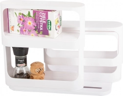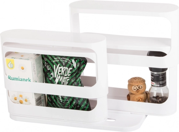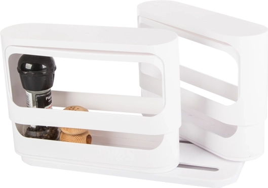 Ovaj bijeli plastični organizator je savršeno rješenje za organizaciju začina i staklenki u vašoj kuhinji. Njegova rotirajuća konstrukcija maksimalno iskorištava prostor u ormarićima, što ga čini idealnim dodatkom za svaki dom.