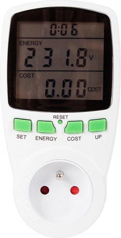 Ovaj digitalni vatmetar pruža precizno mjerenje potrošnje energije i troškova. Velik i pregledan zaslon omogućuje jednim pogledom saznati sve važne parametre poput trenutačnog napona, frekvencije ili potrošnje struje.