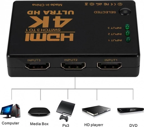- 3 ulaza / 1 izlaz – idealno za TV-e sa nedostatkom HDMI portova.