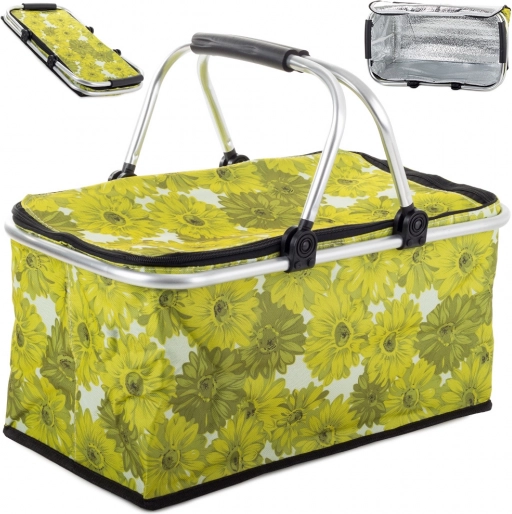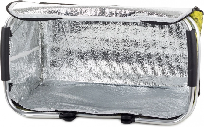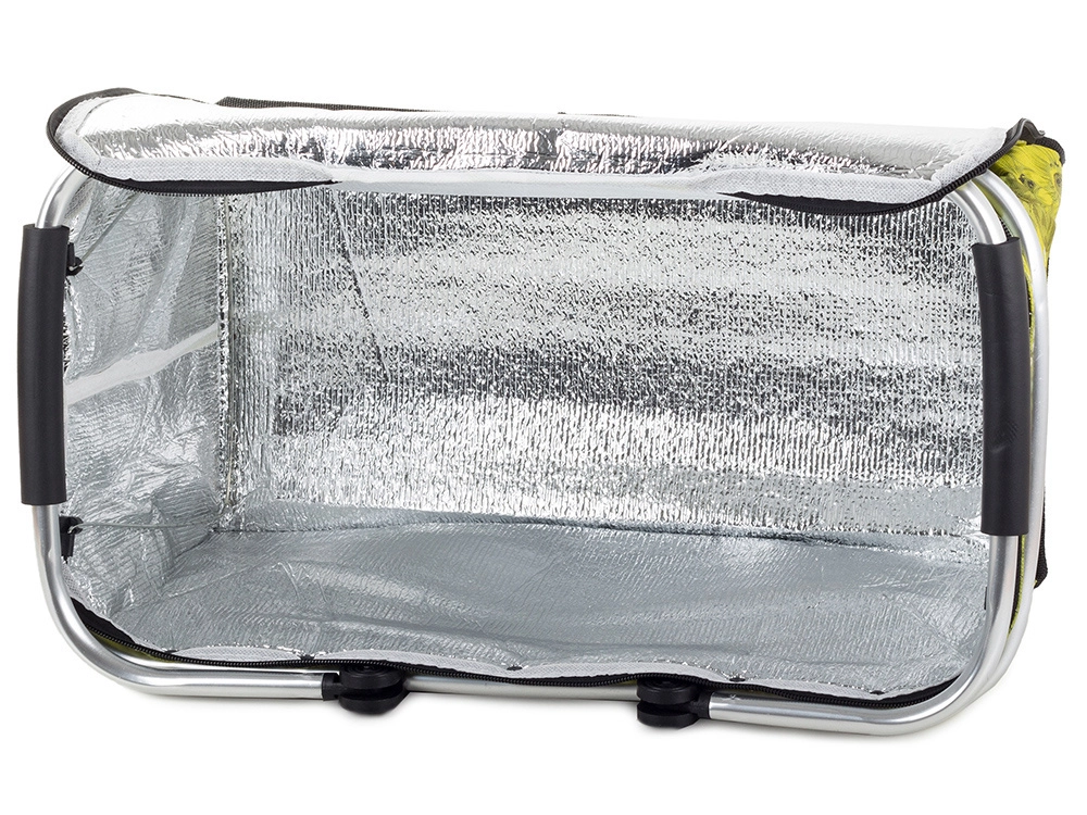 Praktična i stilish termo košara za piknike, plažu i kupovinu koja zahvaljujući unutarnjoj termo foliji pouzdano održava hranu i pića na željenoj temperaturi. Ima lagani aluminijski okvir, zatvaranje na patentni zatvarač, sklopive ručke s protukliznom obradom i ojačano podstavljeno dno za stabilnost. U sklopljenom stanju zauzima minimalno mjesta.