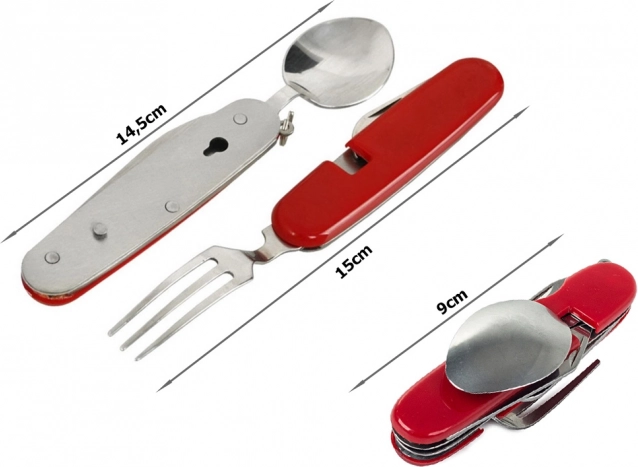 - Četiri alata u jednom - vilica, žlica, nož i otvarač za boce