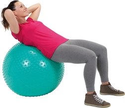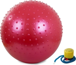 Gimnastička lopta izrađena od izdržljivog PVC materijala savršena je za redovite treninge. Lopta ima teksturiranu površinu s izbočinama koje pružaju dodatnu masažu i stimulaciju tijekom vježbanja. Ova lopta prikladna je za niz vježbi i podupire pravilan položaj tijela.