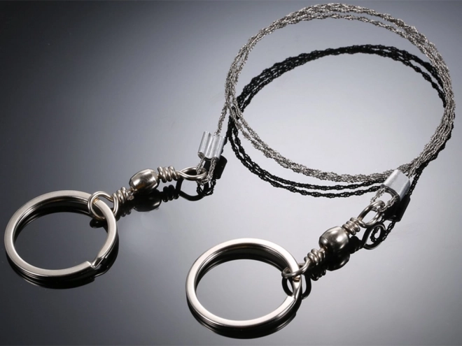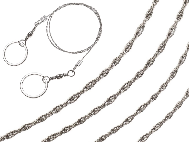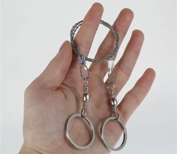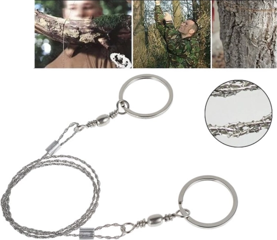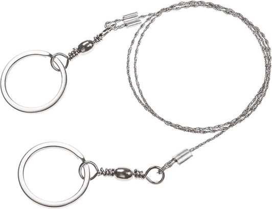 Praktična žičana pila nezamjenjiv je dio svake survival, EDC i kamping opreme. Pleteno nehrđajuće uže s tisućama finih zubi osigurava brz i učinkovit rez uz minimalnu težinu. Metalne prstene možete držati izravno ili na njih pričvrstiti drvene štapove za još udobniji rad.