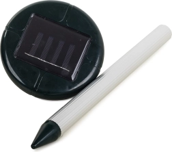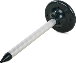 Instalacija je brza: zabodite vrh u tlo i pustite sunce da odradi posao. Za veće površine preporučujemo koristiti više jedinica s dovoljno gustim razmještajem. Najbolji doseg postiže se u vlažnom ili glinastom tlu; u suhom i pjeskovitom tlu učinkovito područje može biti smanjeno.