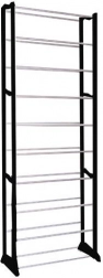 Podesiv broj razina 1–10 i razmak 14 cm omogućuju prilagodbu različitim tipovima obuće. Crni okvir s kromom djeluje elegantno u svakom interijeru.