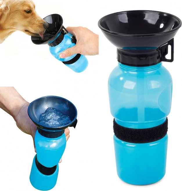 Praktična putna boca za pse s integriranom zdjelicom za udobno napajanje u pokretu. Dovoljno je stisnuti bocu i voda se prelije u zdjelicu. Zahvaljujući nepropusnom čepu nema curenja u ruksaku, a uz pričvršćenu ručku i traku na čičak lako je pričvrstite na pojas ili ruksak. Idealno za šetnje, planinarenja i putovanja po vrućini.