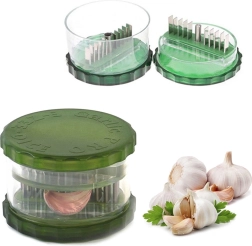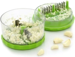 Tražite praktičnog pomoćnika za svakodnevno kuhanje? Ova rotacijska sjeckalica za češnjak i orahe štedi vrijeme i trud. Dovoljno je umetnuti oguljene režnjeve češnjaka ili druge namirnice, nekoliko puta okrenuti svaki dio jedan prema drugome i gotovo – fino ili grubo sjeckano prema potrebi.