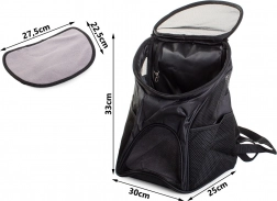 Ruksak se otvara odozgo putem zatvarača i sadrži izmjenjivi uložak za lakše održavanje. Ugrađeni mrežasti elementi osiguravaju dobru cirkulaciju zraka, što pridonosi udobnosti vašeg kućnog ljubimca.