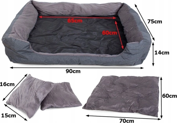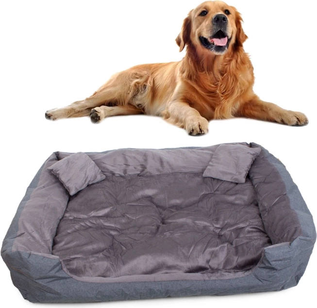 Priuštite svom ljubimcu maksimalnu udobnost s ovim prostranim ležajem XXL. Izrađen je od čvrstog i vodootpornog materijala, ima odvojivi mekani jastuk, a dio kompleta su i dva mala jastučića za još veću udobnost. Lako se čisti, otporan je na ogrebotine i odlično odgovara psima i drugim kućnim ljubimcima.